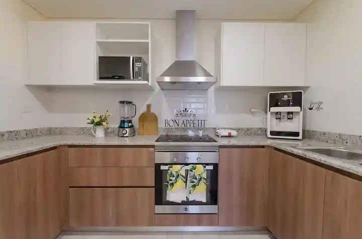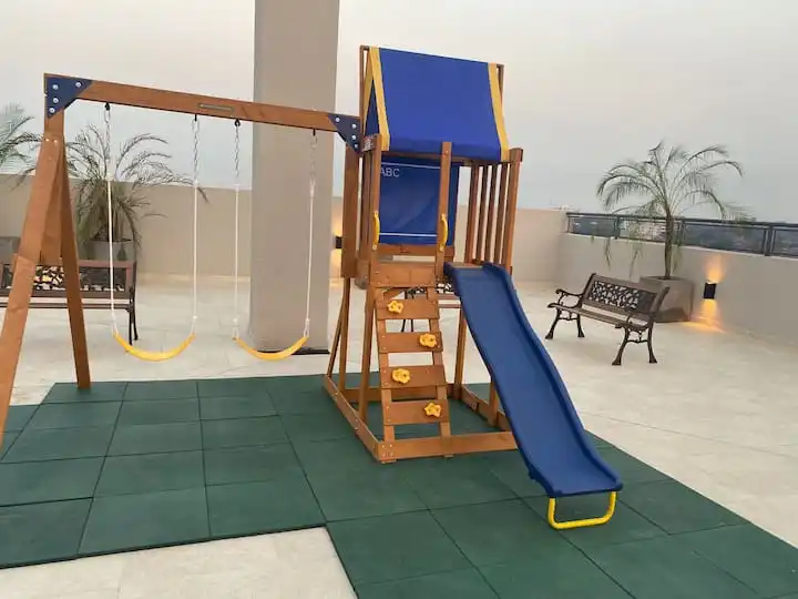 Enjoy building amenities such as a rooftop pool, gym, children’s play area, high-speed WiFi, Smart TV, air conditioning, and private parking. The location places you close to top cafés, shopping centers, and dining options, making it ideal for both short and extended stays.